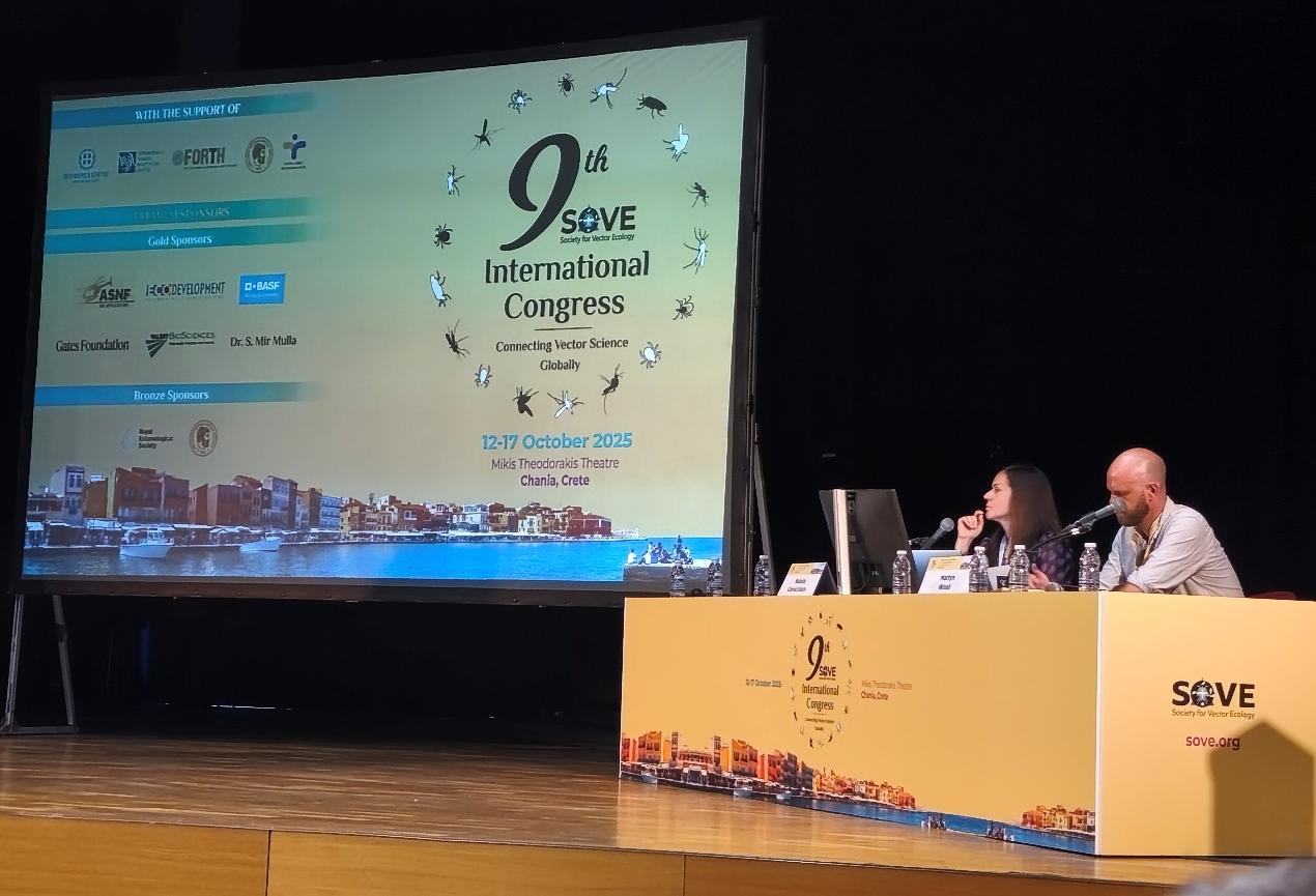 The poster (Bacteria isolated from biodiverse Mediterranean island habitats yield a large array of biopesticidal metabolites against mosquito larvae; one novel Chryseobacterium is a potent new tool) presented by Dr. Martyn J. Wood at SOVE 25 focused on the discovery and development of novel mosquitocidal bacteria isolated from biodiverse Mediterranean habitats. From a library of over 1,700 environmental isolates, 792 were screened, with 108 causing 100% larval mortality within seven days and 37 achieving this within three days. Subsequent bioassays using sonicated and solvent-extracted preparations identified several highly active strains, including a novel Chryseobacterium (Cr1) and Pseudomonas spp., which maintained strong efficacy across assays. Extraction and fractionation approaches demonstrated clear differences in the localisation and polarity of active compounds, with Cr1 producing predominantly non-polar metabolites and evidence of synergistic activity between specific fractions. Ongoing analytical work is targeting structural elucidation of these compounds which have been narrowed to a small selection of fatty acids and terpene like compounds. Additionally, Dr. Wood was invited to act as a session co-chair for the second student presentations session, further enhancing the visibility of the MicroBioPest group members and their ongoing works to the vector ecology research community.