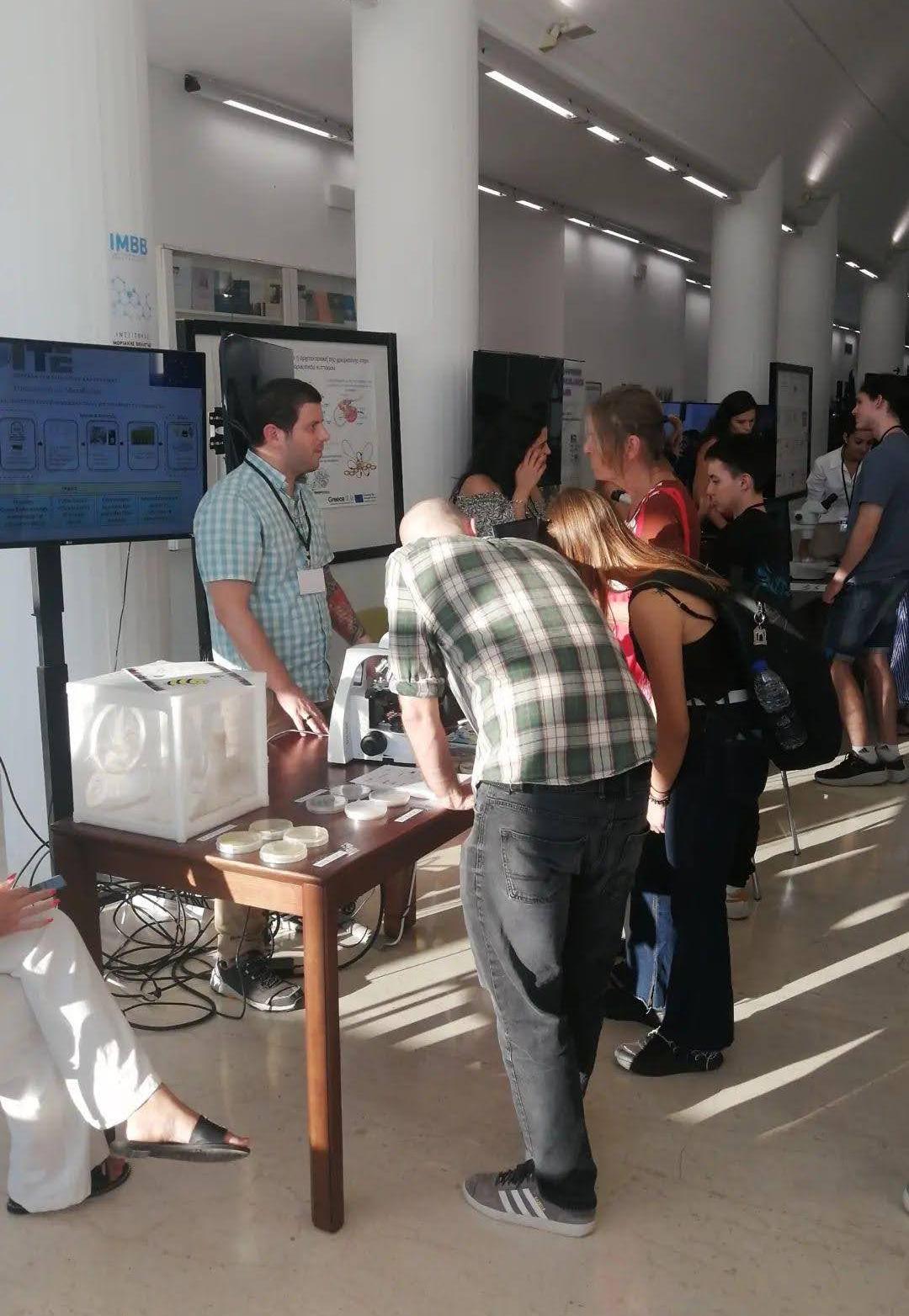 The event is a European initiative to promote the value of research and science. The MicroBioPest group set up a stand to present our research to the public. The stand contained a mosquito cage, to demonstrate part of their life-cycle and rearing; Petri dishes containing bacterial and fungal isolates; a microscope with slides of the microorganisms; flyers and a poster with an explanation of the project; and a TV exhibiting the video produced about the project.